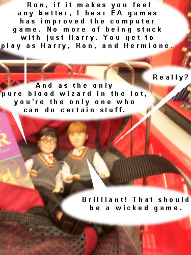 So all in all, Ron and Harry went home happy boys. And they told Hermione and Ginny and anyone who would listen about all the versions of Harry they found in the store. The goofy ones and the cool ones.
