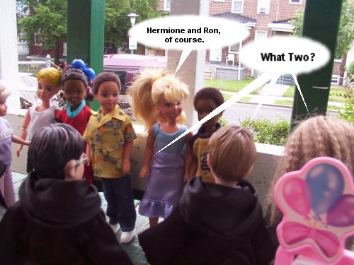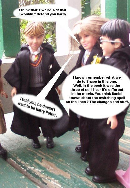 Hermione & Ron: WHAT?!! Hermione: We never held hands. Stacie: I hear you do in the movie. And there's this moment where you turn and wrap your arms around Ron... Ron: Wait, what are you talking about? That never happened.