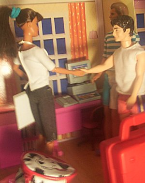 walks in)Daniel: Hey Mr. Ken, I -- (notices Sophia) Oh, hi, who are you? Ken: Daniel this is Sophia, Sophia meet Daniel. Sophia: Hi Daniel. Are you Kevin's friend? Ken: No, Kevin's gone. I took in Danny here after that. Daniel: It's Daniel, not Dan, not Danny, Daniel. Ken: Sorry Daniel. |