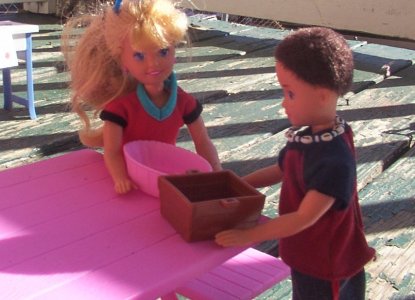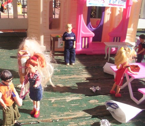 (Back at the picnic area, the big kids found themselves on clean up duty.)