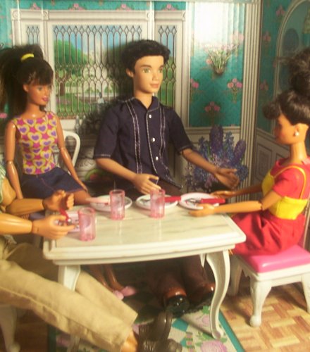 The family had just finished dinner, but was still sitting at the dinner table talking. (seated around the table from left to right: Bill, Sophia, Ellis, and Maria)