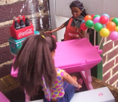 (Sophia went to the cooler and got herself a can of Soda before sitting down. There was someone sitting there, but it was no one she knew.)