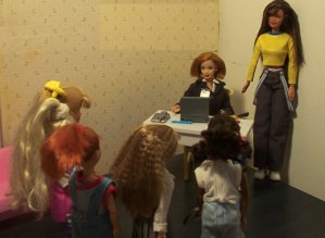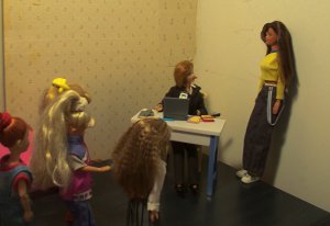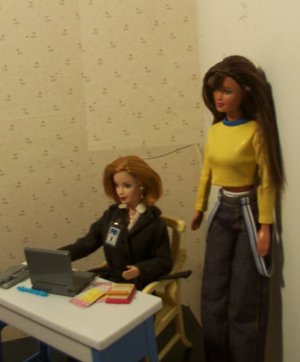 (After Hermione got free, the girl returned to Scully’s office with Hermione. Scully wasn’t alone, she was with some Barbie and seemed a little busy. They were about to leave when Scully looked up.)