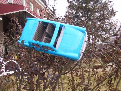 (Suddenly the car began to sputter and jerk again as if it was trying to get itself out the tree)