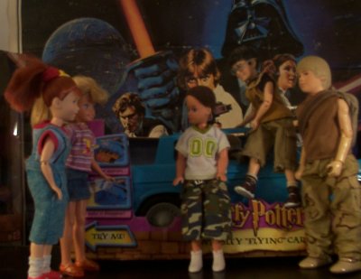 (While the boys tried to find a way to get the car out the box, Stacie arrived.)