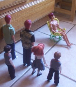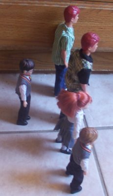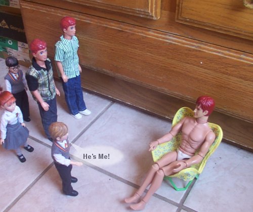 ![]() (They soon caught a partial look at the doll in the room) Fred: He has red hair. George: He's to young to be dad. |