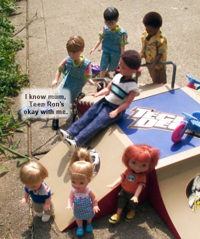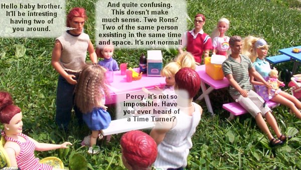 Little Ron wasn't paying much attention to the other's welcoming teen Ron, as Harry was teaching him