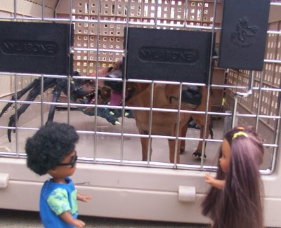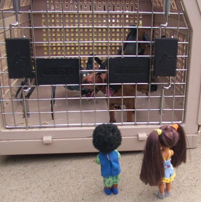 Mark: Look it's a doggy. Mellissa: And it's sad, it wants to get out. Mark: Lets get it out. |