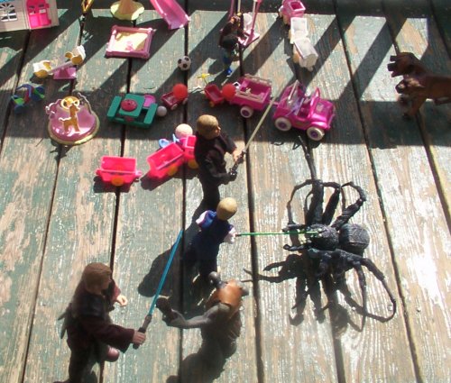 In fact, little Anakin had a captive audience watching from the top floor balcony. The girls had shoved the boys out of the way for a better look at Anakin. Stacie: Wow Erika: He really is good. Ginny: He's more than good, he's magnificent. Tina: I never knew he was so brave. |