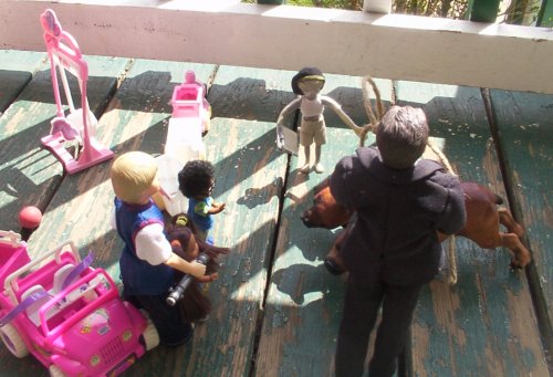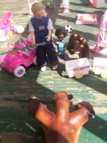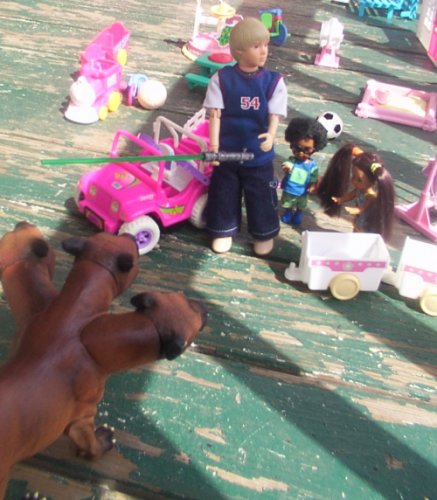 Mrs. Carr came running out to get her children. Mark: Stop them mommy. Mellissa: They takin' our doggy. Mrs. Carr: He's not your doggy and you can't have him. Mark: But we want a doggy. Mrs. Carr: But you can't just pick up any old dog off the street. Next time, even if you think a strange dog is nice. Do not walk up to them. Mark & Mellissa: Okay Mommy. |