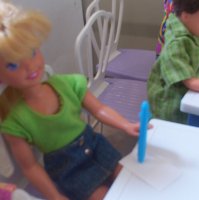 When I heard we had to write about someone else, I was going to write about Anakin, he was so brave yesterday. But I have to say Todd should go. I mean, I appreciate what Anakin did the other day, but Todd's been patient with me a lot. Especially when I had a lot of girl friends and he didn't have any boys to play with. Then Anakin came along and at first was a bit of a jerk. He thought he was all special for being an action figure instead of a Barbie doll. He's gotten much better, especially since Harry showed up, but Todd's my brother and he's been really patient and he finally got his friends and I think he deserves to go most.