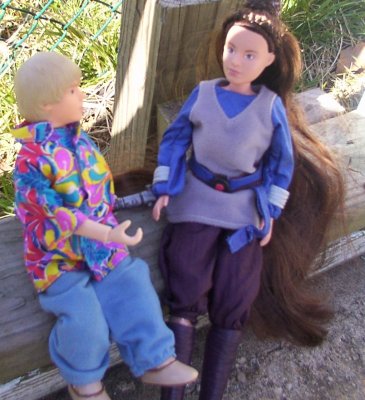 Padme: Hey lil Ani, why aren't you with your friends? Aren't you excited about who gets picked for camp Ecampelos? Anakin: A little. Padme: I see you still have the saber Big Anakin gave you. |