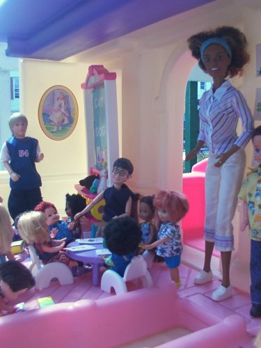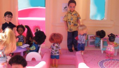 ![]() After parting company with Sophia, Mrs. Carr came upstairs. Mrs. Carr: Okay kids, put your crayons and toys away and lets get ready to go outside. Boys, get your groups together and lead them single file outside. Older Boys: Yes ma'm. |