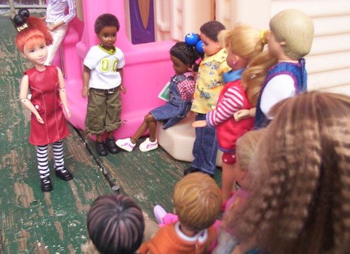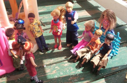 Ginny: Dean, that's my brother Ron, the one I was telling you about. Harry's the boy beside him, That's Hermione behind them, Tina's on the other side of Ron. Anakin standing next to her Stacie and Todd next to him, and Erika on the end here (Each child had waved and said hello as they were introduced) Dean: Hi everyone. |