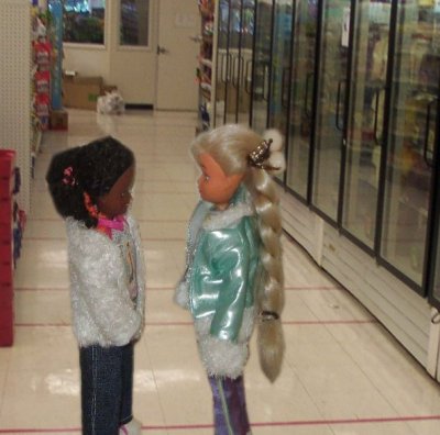 (The kids arrived at the store and split up into girls and boys.)