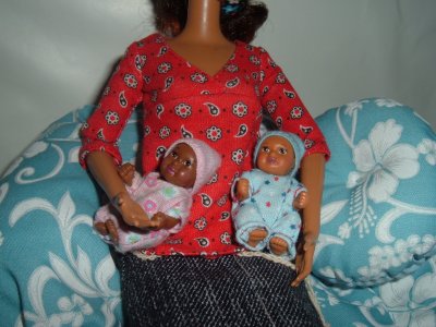 King & Me'chelle - version One. Originally, the youngest carr twins (born in episode 4) were AA Dr. Barbie's Happy Family newborns by Mattel.
