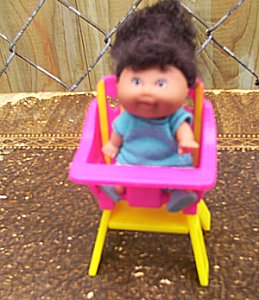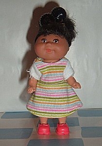 Maniya - Version 2. Maniya's head was transferred to a Happy Family toddler body for episode 4 of 'On the Avenue', making her a little bit taller. More resembling a two year old,